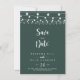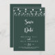 This string lights green wedding save the date is perfect for a rustic wedding. The design features beautiful hand-painted string lights in a green background.