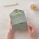 This all-in-one wedding invitation features pretty string lights and botanical greenery falling across elegant typography on a sage green background. The invitation includes a perforated RSVP card featuring a QR code. Designed by Thisisnotme©