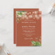 This elegant eucalyptus greenery botanical string lights terracotta wedding invitation can be personalized with your information in chic typography with your wedding website QR code on the reverse. Designed by Thisisnotme©