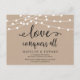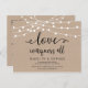 This is the modern minimal Rustic Kraft String lights, in Black font, Wedding party invitation Rescheduled (postponed / postponement) postcard (Love conquers all) . It is the perfect to make the reschedule announcement to your friends and family.