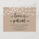 This is the modern minimal Rustic Kraft String lights, in Black font, Wedding party invitation Rescheduled (postponed / postponement) postcard (Love is patient) . It is the perfect to make the reschedule announcement to your friends and family.
