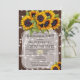 Rustic country elegant summer night or autumn fall housewarming party / barbecue stylish invitation template on dark brown barn wood background featuring bunches of yellow orange sunflowers and strings of twinkle white lights around a big transparent mason jar. You can choose to customize it further changing fonts and colors of lettering. ---- The invitation is suitable for an elegant garden, backyard, farm or ranch rustic housewarming bbq / party. --- If you need assistance, please contact me!