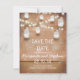 Perfect save the date flat card with rustic light color wood background, string lights and sparkling mason jars. Please contact me if you need help with customization or have a custom color request.