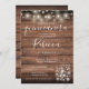 A rustic Quinceañera 15th birthday invitation featuring pretty string lights and mason jars with stylish script typography, on a rustic wood background. Designed by Thisisnotme©
