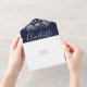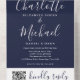 String Lights Navy Blue Script QR Code Wedding All In One Invitation