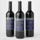 Featuring pretty string lights and chic signature style names, this elegant navy blue wedding wine label can be personalized with your information in elegant lettering. Designed by Thisisnotme©