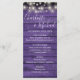 Rustic wedding menu card featuring pretty string lights and signature style names, this stylish menu card can be personalized with your information in chic white lettering on a purple wood panels background. Designed by Thisisnotme©