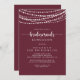 This string lights red bridesmaids luncheon shower invitation is perfect for a rustic wedding shower. The design features beautiful hand-painted string lights in a burgundy background.