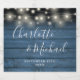 Blue Rustic Wood String Lights Script Wedding Designed by Thisisnotme Designs