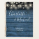 Elegant wedding planner personalized with signature style names on a rustic blue wood and string lights background. Designed by Thisisnotme©