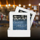 Elegant wedding favor personalized with signature style names and your special wedding date on a rustic blue wood and string lights background. Designed by Thisisnotme©