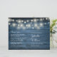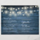 A stylish rustic wedding program featuring pretty string lights on a rustic navy blue wood background. Add your special wedding ceremony details set in chic stylish typography. Hand fold to create a beautiful folded wedding program. Designed by Thisisnotme©