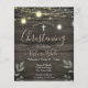 Pink script typography. Faux wood texture background, jar lights, rustic country design. Christening celebration budget invitations. You can add photos to the back or additional text if needed.