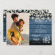 A stylish wedding invitation featuring your special photo and pretty sage and lilac leaves, string lights, mason jars and your wedding details set in elegant text on a blue rustic wood background. Designed by Thisisnotme©