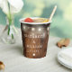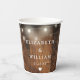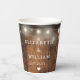 These string lights rustic wood boho barn wedding paper cups can be personalized with your information in chic typography. Designed by Thisisnotme©