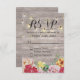String Lights Rustic Wood Floral Wedding RSVP Card