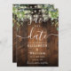 String Lights Rustic Wood Greenery Wedding Save The Date