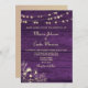 Plain white envelopes are included with paper invitations and will come to fit the invitation size you select. If you don’t need the envelopes, you may choose to not receive them by selecting the dropdown below "Envelopes" and choosing "None." If you’d like to have a design on your envelopes, you can browse all of these available envelopes to find the design that complements your String Lights Rustic Wood Purple Wedding Invitation.