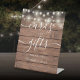 String Lights Rustic Wood Script Cards And Gifts Pedestal Sign