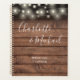 Elegant wedding planner personalized with signature style names on a rustic wood and string lights background. Designed by Thisisnotme©
