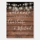Featuring pretty string lights and signature style names, this elegant rustic welcome sign can be personalized with your information in chic lettering on a wood panels background. Designed by Thisisnotme©