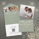 Embark on a journey of modern elegance with our all-in-one wedding invitation, featuring a serene sage green palette that exudes sophistication. Adorned with delicate string lights and a romantic gold rope heart, it captures the essence of romance. Personalized with four cherished photos of the couple, it's a testament to your unique love story. Plus, with the convenience of our included wedding website and QR code for RSVP, every detail is effortlessly chic and convenient. Join us as we celebrate love and begin this enchanting chapter together!