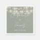 This sage green string lights elegant script wedding napkin can be personalized with your information in chic typography. Designed by Thisisnotme©