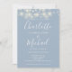 String Lights Script Dusty Blue QR Code Wedding Invitation