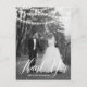 Wedding thank you postcard where you can add your favorite wedding photo! The photo is adorned with shining string lights and a beautiful, swirly script saying Thank you. Add your names, and on the back, a personal note!