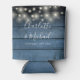 String Lights Signature Script Blue Wood Wedding Can Cooler