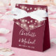 Elegant burgundy wedding favor box featuring pretty string lights, stylish signature script names and special date set in modern typography. You can personalize it with your own thank you message under the lid. A perfect way to say thank you to your guests! Designed by Thisisnotme©