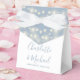 Elegant dusty blue wedding favor box featuring pretty string lights, stylish signature script names and special date set in chic typography. You can personalize with your own thank you message under the lid. A perfect way to say thank you to your guests! Designed by Thisisnotme©