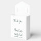 Elegant emerald green wedding favor box featuring pretty string lights, stylish signature script names and special date set in chic typography. You can personalize with your own thank you message under the lid. A perfect way to say thank you to your guests! Designed by Thisisnotme©