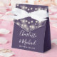 Elegant purple wedding favor box featuring pretty string lights, stylish signature script names and special date set in modern typography. You can personalize it with your own thank you message under the lid. A perfect way to say thank you to your guests! Designed by Thisisnotme©