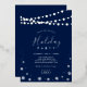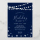 A simply and modern real foil invitation for your Christmas holiday dinner party, company holiday party, or winter business events. This design features stylish string lights, snowflakes, and typography "Holiday PARTY" on a navy blue background. You can add your logo, customize all the text, foil color or background color.