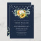string lights sunflower navy blue wedding invitation