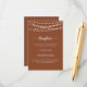 This string lights terracotta wedding reception enclosure card is perfect for a rustic wedding. The design features beautiful hand-painted string lights in a terracotta background.