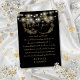 An elegant wedding celebration thank you reception card featuring pretty string lights. Personalized with your special thank you message set in stylish gold typography on a black background. A special keepsake thank you for your guests. Designed by Thisisnotme©