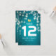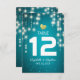 Wedding Seating Place / Table Number / Escort Card Templates - Elegant Vintage String Lights with Turquoise Blue Glitter Sparkle Background.