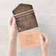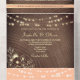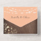 String Lights Wood Rustic Peach Wedding All In One Invitation