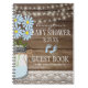 Let your baby shower guests write something special to the mom -to-be. This adorable baby shower guestbook shows an image of barn wood with a string of lights, mason jar filled with blue daisies and blue baby footprints. An image of lace borders the bottom. Guest book is personalized with mommys name and shower date. Customize all font, text and colors. To see more fabulous products, please visit "The Hungarican Princess - A Boutique" @ zazzle.com/hungaricanprincess. Congratulations.