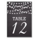 String of lights on chalkboard summer wedding table number featuring white twinkle glowing string of lights on the top on chalkboard. This modern and trendy wedding design is part of a wedding set or collection, is fully customizable and is perfect for an outdoor summer night rustic wedding.
