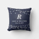 Your favorite bride and groom will love this customizable pillow featuring their wedding day or anniversary! Strings of white lights surround a monogram, couple's names and wedding date or other special occasion. You can change the navy background color by clicking the Customize button. Makes a beautiful, modern, personalized gift for newlyweds.