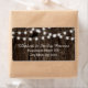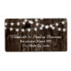 String of lights on old wood summer wedding label featuring white twinkle glowing string of lights on the top on old brown wood background. This modern and trendy wooden wedding design is part of a wedding set or collection, is fully customizable and is perfect for an outdoor summer night barn western rustic wedding. Note that there is not real wood just printed images.