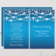 String of lights and white snowflakes blue winter wedding ceremony and party folded program featuring white twinkle glowing string of lights with white snowflakes on the top on blue gradient background. This modern and trendy wedding design is part of a wedding set or collection, is fully customizable and is perfect for a winter Christmas wedding. You will have to fold it in the center. Choose only this type of paper-value as it folds well. Some elements courtesy of vectorportal.com.