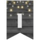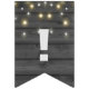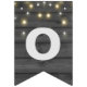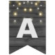 string of party lights on black wood bunting flags