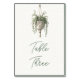 Introducing our exclusive Table Number Card, a stunning blend of sophistication and nature-inspired elegance. This meticulously crafted table number features a delicate watercolor illustration of a hanging plant, artfully suspended in a chic macramé hanger. The hand-drawn design exudes a sense of breezy sophistication, making it the perfect addition to any modern, stylish event.