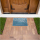 Cape Cod blue pairs with driftwood gray for a coastal color doormat which gently reminds your guests to remove their shoes. Thank you is a shimmery blue watercolor imprinted on the center.String lights printed in soft focus pastels.