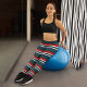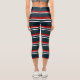 Capri leggings for women with retro red and blue stripes in a style that is both modern and retro.