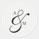 Stripe Monogram Script Ampersand Wedding Classic Round Sticker